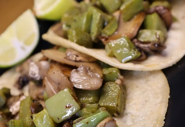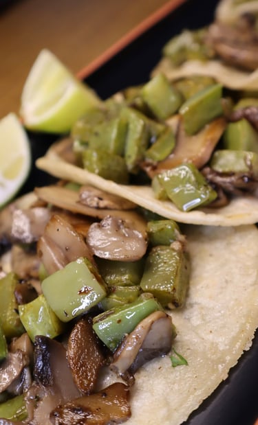 A mixed of mushrooms, bell peppers, onion & 4 flour tortillas