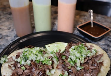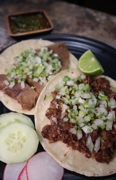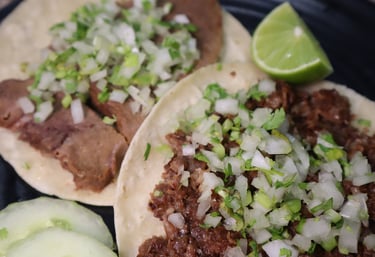Corn tortilla, with the choice of your meat, lime and topped with onion & cilantro