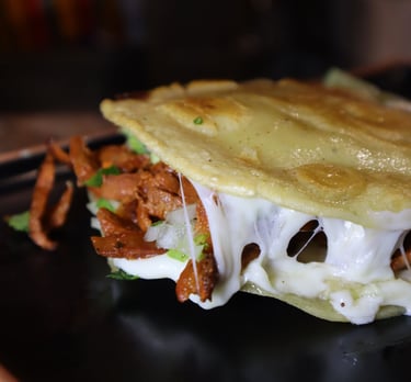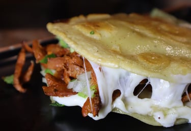 2 corn tortillas, melted mozza cheese, guacamole, cilantro, onion & the meat of your choice
