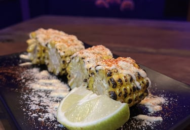 Grilled corn with butter, mayonnaise and cream mix, parmesan cheese. Choose paprika or cayenne pepper (spicy)
