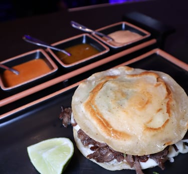 Traditional mexican bread, with beans, guacamole, mix of onion & cilantro and your choice of meat