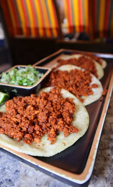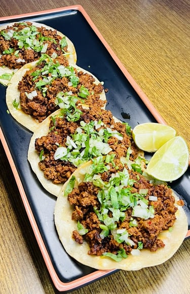 4 Tacos of Chorizo vegan, corn tortilla, cilantro & onion
