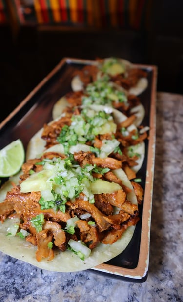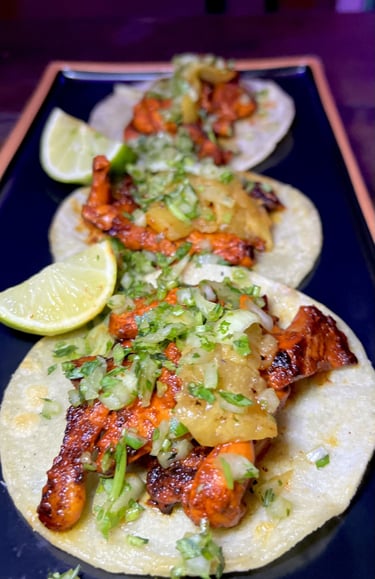 3 Tacos of Al Pastor chicken, corn tortilla, pineapple, cilantro & onion